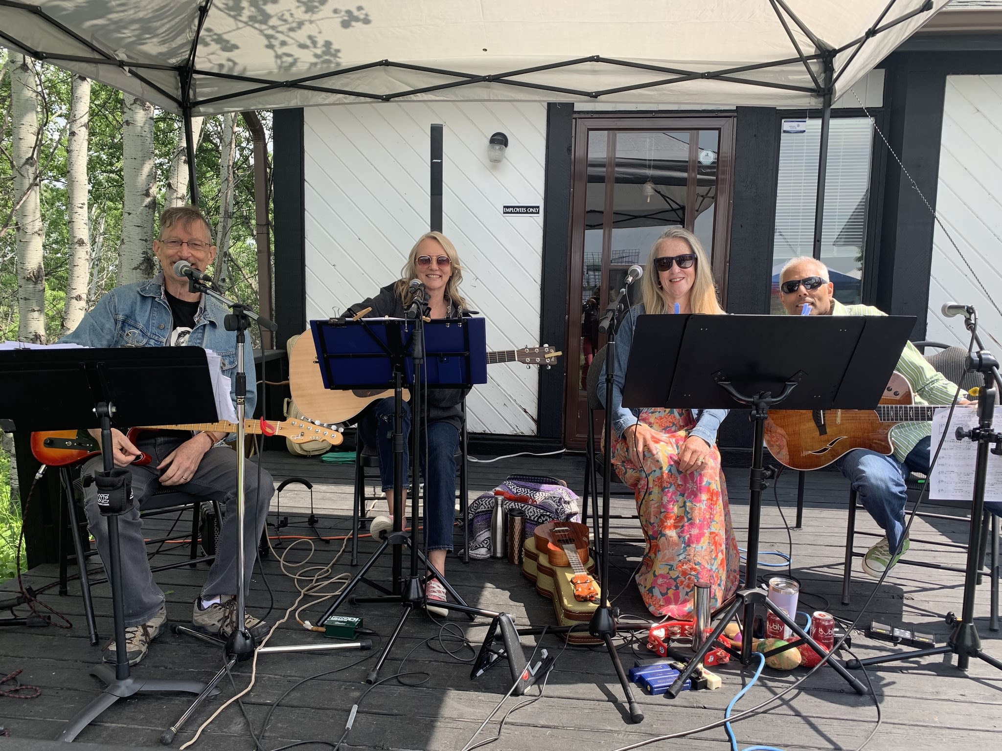 Acoustic quartet (2 guys/2gals), playing covers and originals. 4 part harmonies, guitars, harmonica and more covering decades of music from pop and rock classics, country, folk and whatever we delve into to create a fun set of music for varied occasions and settings.